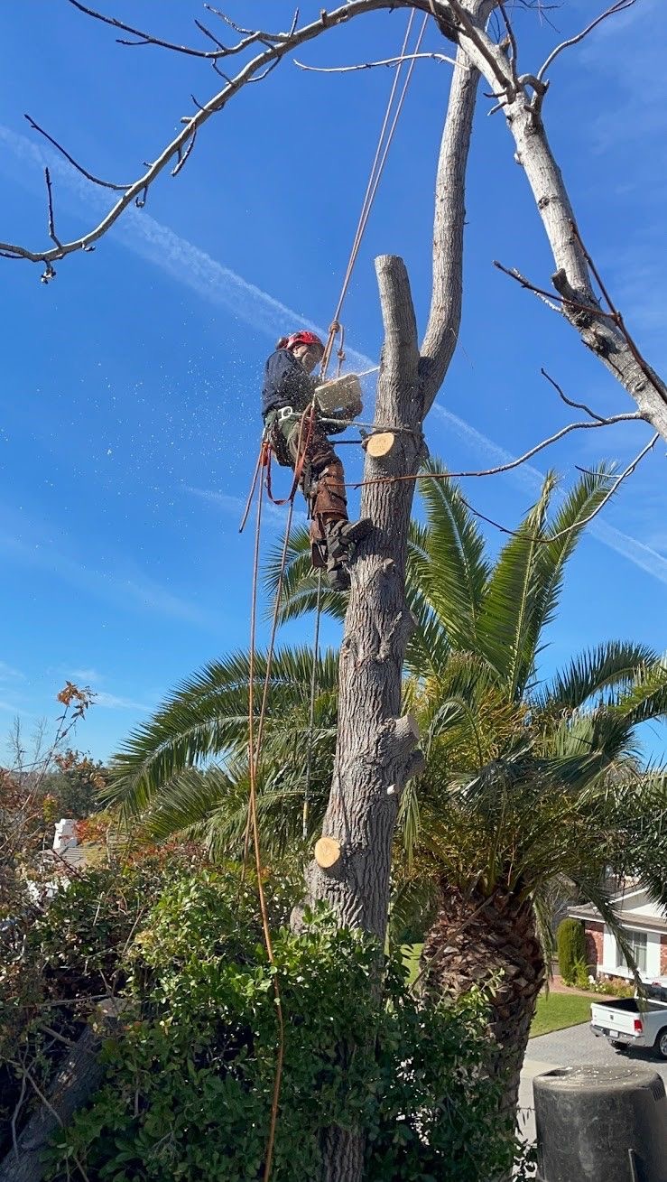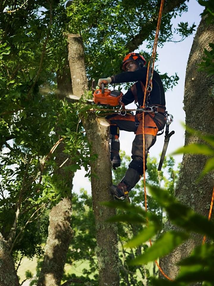 Équipements : tronçonneuse, harnais, cordes, nacelle, grue selon les besoins.